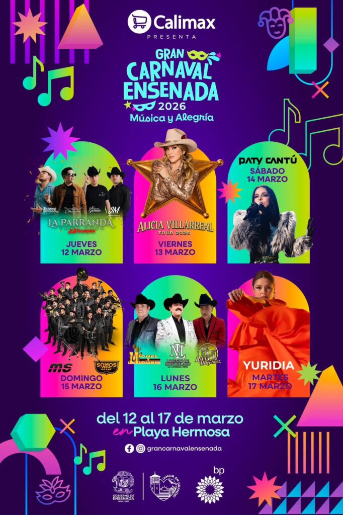 La alcaldesa de Ensenada, Claudia Agatón Muñiz, presentó el Gran Carnaval Ensenada 2026, que se realizará del 12 al 17 de marzo con una cartelera musical gratuita y desfiles de carros alegóricos. De acuerdo con el anuncio, se espera una afluencia superior a 80 mil personas por día durante los seis días de actividades.